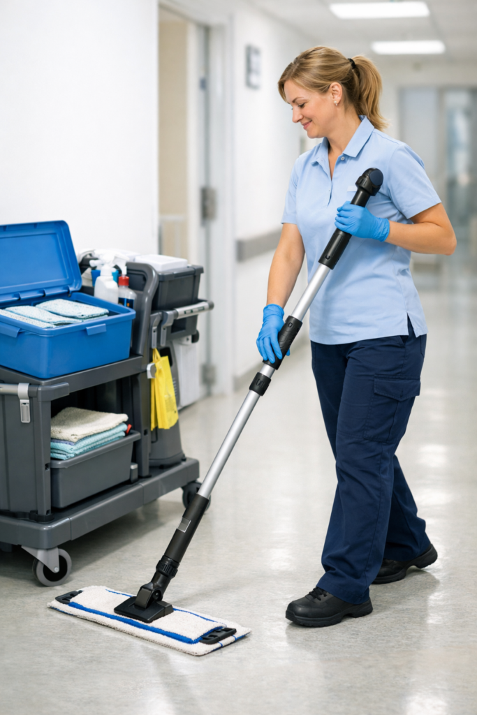 Réduire les TMS : pré-imprégnation et matériel ergonomique | GHENO Accueil › Nos actualités › Ergonomie Réduire les TMS : l’alliance de la méthode de pré-imprégnation et du matériel ergonomique Dossier ergonomie Mise à jour 2025 Lecture 6 min Dans le secteur de la propreté, les chiffres sont alarmants : 97 % des maladies professionnelles reconnues sont des Troubles Musculo-Squelettiques (TMS). Dos bloqué, douleurs aux épaules, tendinites au poignet… Chaque année, près de 74 % des agents déclarent souffrir de douleurs musculaires. En 2025, l’adoption d’une méthodologie précise, la pré-imprégnation, couplée à un matériel adapté, permet de changer radicalement le quotidien des équipes. Chiffres clés à retenir 97 % des maladies professionnelles reconnues sont des TMS 74 % des agents déclarent des douleurs musculaires 80 % de réduction possible d’eau et de chimie 70 % jusqu’à ce taux de financement sur l’investissement 1. Une méthode innovante : la pré-imprégnation Pour protéger durablement la santé des agents, il ne suffit pas de changer d’outil, il faut changer de méthode. La pré-imprégnation est une technique de nettoyage qui supprime deux causes majeures de TMS : la manipulation de charges lourdes et les gestes répétitifs de torsion. Principe technique Au lieu de tremper une frange dans l’eau sale puis d’essorer manuellement à répétition, l’agent prépare ses textiles à l’avance. Protocole On verse une quantité précise de solution (environ 1 L pour 15 bandeaux ou lavettes) dans un seau hermétique. Le liquide se répartit par capillarité. Gain ergonomique Préparation rapide : 30 secondes à 1 minute Suppression du transport de seaux lourds Fin de la presse d’essorage et des torsions du poignet Impact environnemental Réduction importante de la consommation d’eau Diminution de la chimie utilisée Meilleure maîtrise du dosage Point pratique La pré-imprégnation aide aussi à limiter les contaminations croisées, car chaque textile est utilisé propre dès le départ. 2. L’innovation matérielle au service du geste La méthode s’appuie sur des outils spécifiques conçus pour corriger les postures et faciliter le travail sans effort inutile. Le balai à manche ergonomique Le balai n’est plus un simple manche droit. Les systèmes modernes intègrent des innovations clés pour protéger les articulations. Manche télescopique : réglage à hauteur du menton pour travailler le dos droit Poignée globe rotative : moins de friction dans la paume, moins de tension Connectique en S : accompagne la godille sans casser le poignet, baisse la sollicitation des épaules L’outil flexible à mémoire de forme Le dépoussiérage des surfaces hautes (dessus d’armoires, luminaires) est souvent synonyme de risque de chute ou d’extension douloureuse des bras. Solution : une lame souple qui se tord pour épouser angles et courbes Bénéfice : sur perche télescopique, l’agent nettoie les zones inaccessibles pieds au sol, bras plus relâchés Équipements concernés Systèmes de pré-imprégnation Chariots ergonomiques Autolaveuses compactes Bénéfices attendus Moins de contraintes sur le dos, les épaules et les poignets Organisation plus fluide sur site Consommations mieux maîtrisées L’accompagnement Gheno Nous ne vous laissons pas seuls avec le matériel. Nos experts assurent l’audit de vos pratiques, la formation aux protocoles de pré-imprégnation et vous guident dans le choix des outils adaptés à vos locaux. 1Audit terrainObservation des gestes, contraintes et points de friction dans l’organisation 2Choix du matérielConfiguration du kit et des accessoires selon les surfaces, flux et usages 3FormationProtocoles, dosage, sécurité, mise en route et adoption par l’équipe 4Appui au financementAide au cadrage du projet et au montage des éléments utiles au dossier Envie d’aller plus loin ? Contactez-nous pour une recommandation adaptée à vos locaux et à vos équipes. Écrire à contact@gheno.fr Appeler le siège Consulter le catalogue À retenir Deux leviers se renforcent : une méthode qui supprime les gestes à risque, et des outils qui corrigent la posture. Moins de charges lourdes Moins de torsions Dosage maîtrisé Checklist terrain Avant de lancer le projet, vérifiez : Nombre de zones et de surfaces à traiter Circulation sur site et stockage Hauteur moyenne des utilisateurs pour régler les manches Organisation des textiles propres et sales Contact rapide Une question sur la pré-imprégnation ou le matériel ergonomique ? Nous écrire 04 94 54 44 44